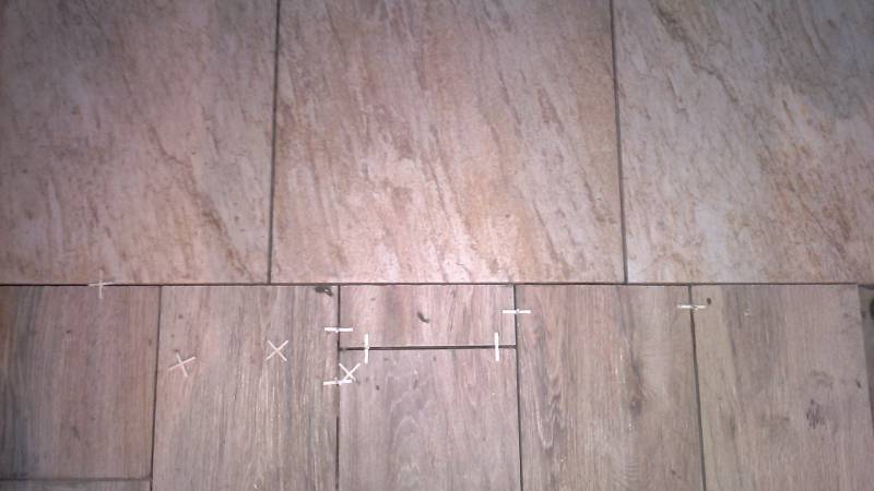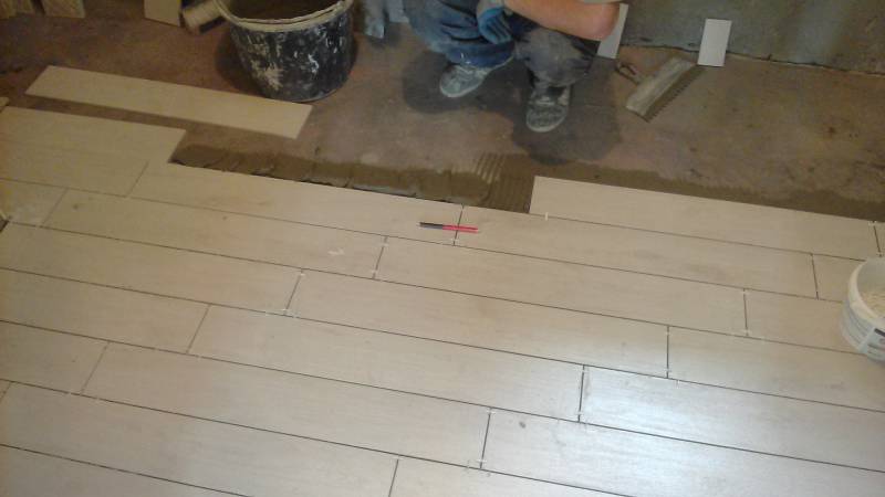 - Carreaux rectangulaires étroits, et "demande" de placer les joints dans un élan, simulant la maçonnerie ou le parquet d'une planche de terrasse. C'est cette option que nous avons choisie face aux locaux en question.
