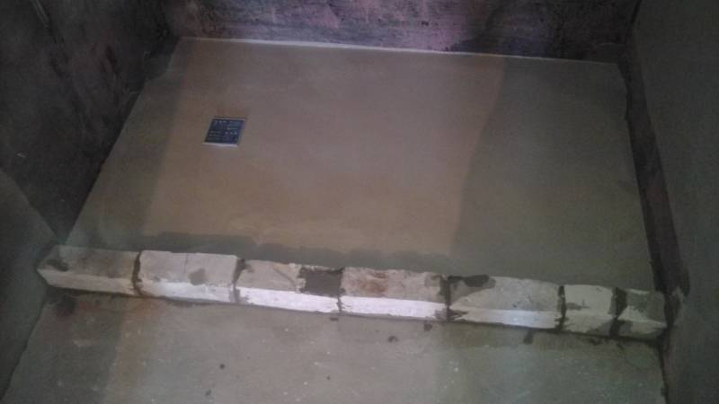 Conseil! Il est possible de traiter par contact avec le béton toute la surface du sol, et pas seulement une partie de celui-ci, car l'eau sera partout si vous ne prenez pas soin de la cloison qui sépare la zone de baignade du pré-bain.