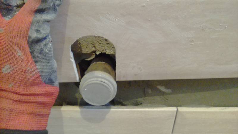 Idéalement, le carreau doit affleurer le bord du raccord. Ainsi, le mélangeur est garanti de se visser en place, et les appareils sanitaires fermeront les bords du trou et du tuyau.