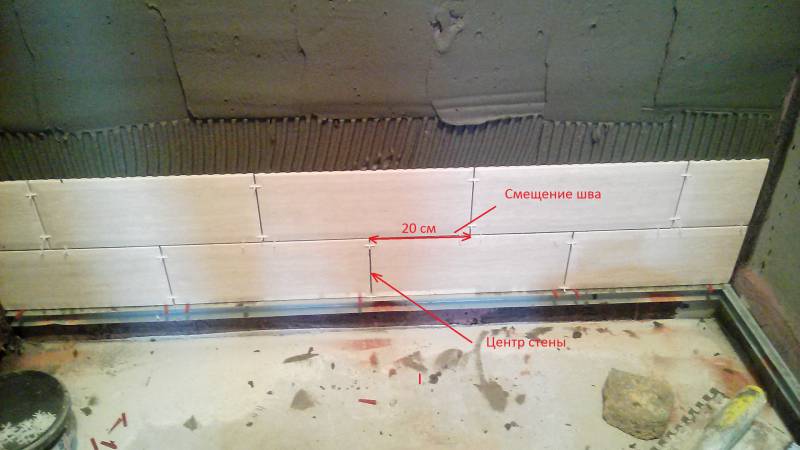 - Pour commencer, déterminez vous-même le type de pose de carreaux. Par exemple, si vous avez des carreaux muraux en céramique, dont les dimensions sont petites et le rapport d'aspect est d'environ 1: 3, la méthode que nous avons choisie est parfaite avec le décalage de la couture.