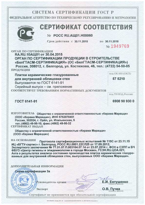 Si, lors de l'achat d'une tuile, vous avez des doutes sur sa qualité, vous pouvez toujours demander au vendeur de vous fournir un certificat de conformité délivré par les autorités compétentes de l'État au fabricant.