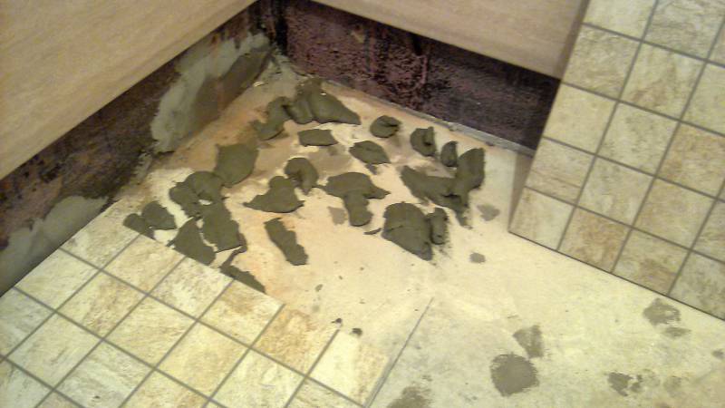 - Dans notre cas, le sol a non seulement différents niveaux, mais également une cloison en brique, qui devra être contournée par la découpe figurative des carreaux, ce qui prend beaucoup de temps.