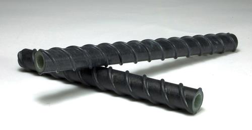 | La photo montre le renforcement en fibre de verre (GFRP-Rebar) - l'option la plus courante. Les tiges en plastique jusqu'à 12 m de long sont renforcées de fibre de verre continue et sont fabriquées dans des diamètres de 4 à 40 mm. Une telle armature est utilisée comme alternative aux analogues en acier dans les structures avec armature non contrainte ou avec armature précontrainte. | |