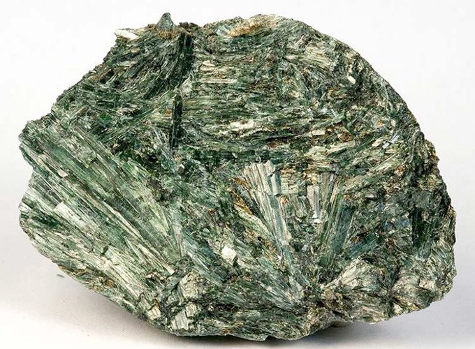 | Silicate de magnésium et de fer, à fibres assez grosses. C'est un satellite dans les gisements de talc, quartz, minerais, donc on le trouve presque partout. Il est principalement utilisé dans l'industrie chimique. | |