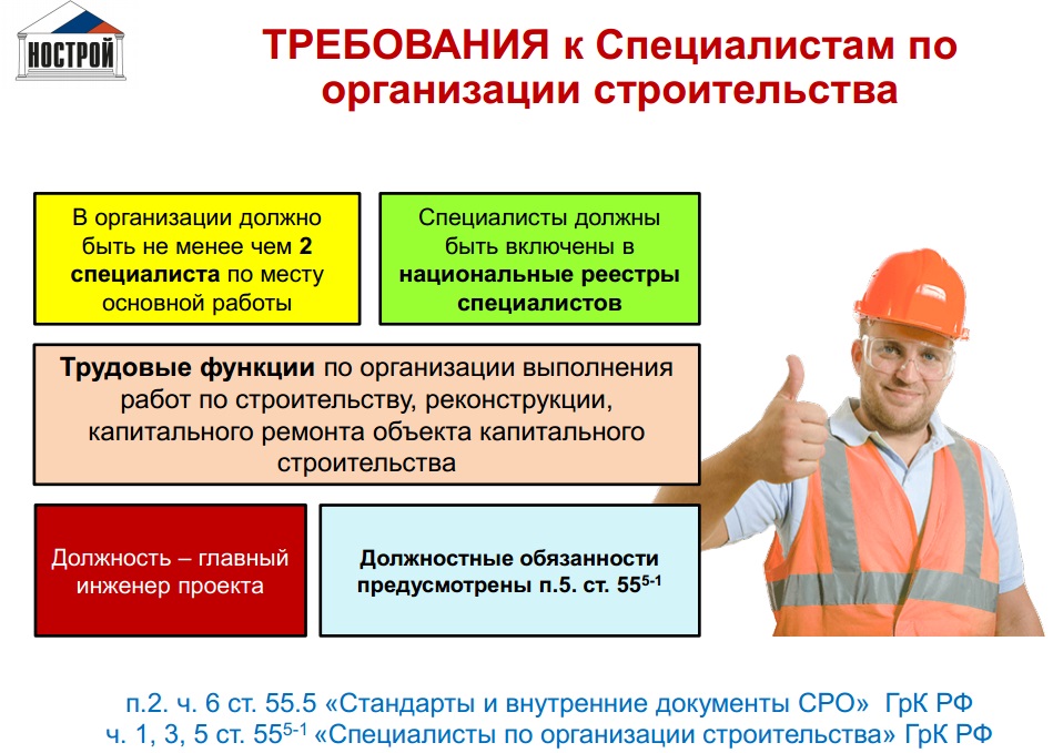 Tout le monde ne peut pas s'inscrire au registre national. 55.5 / 1 paragraphe de l'article du Code civil de la Fédération de Russie, impose certaines exigences aux spécialistes de la construction.