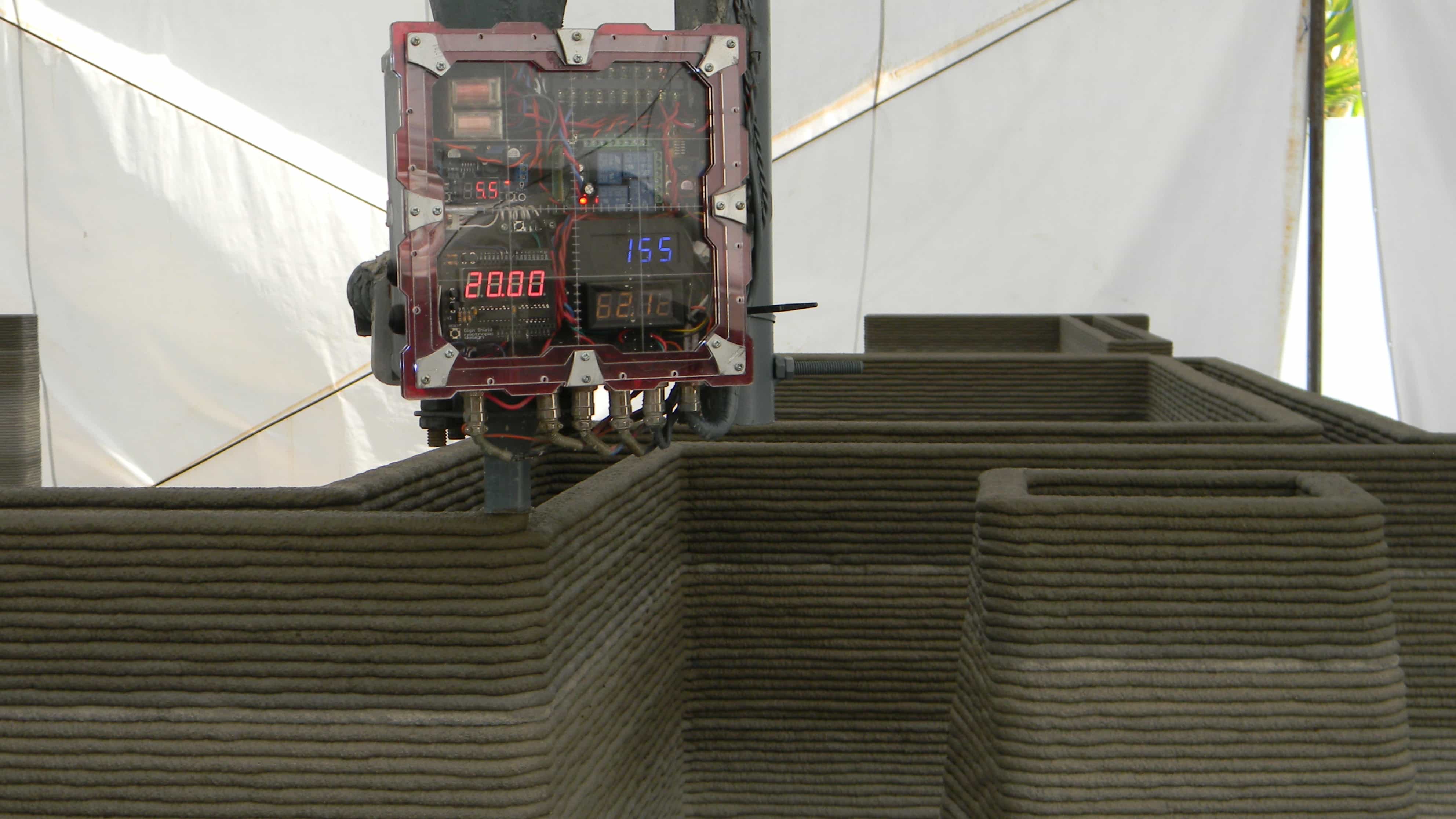 Mais il existe également une option qui peut imprimer la maison de manière continue - c'est-à-dire le long du contour.À l'avenir, cela permettra aux entreprises de construction dotées de tels équipements de voyager avec lui à l'adresse et de construire une maison sur place. Nous ne doutons pas que dans un avenir proche, il y aura des machines combinées capables de faire les deux.