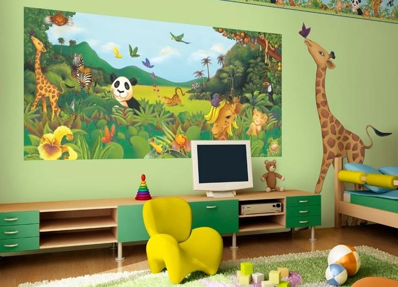 Vous pouvez utiliser des peintures murales photo réalistes représentant la nature ou les animaux à l'intérieur - chats, chiots et chevaux en particulier comme les filles;
