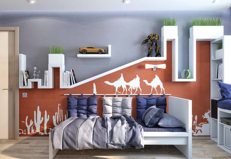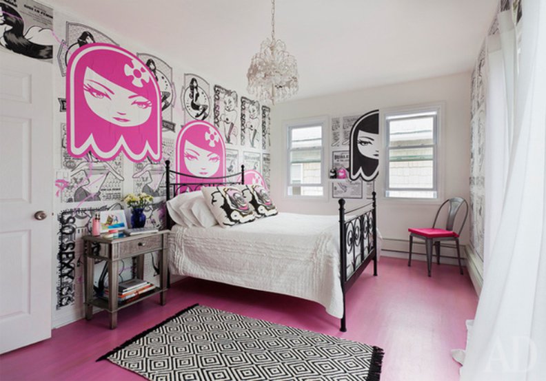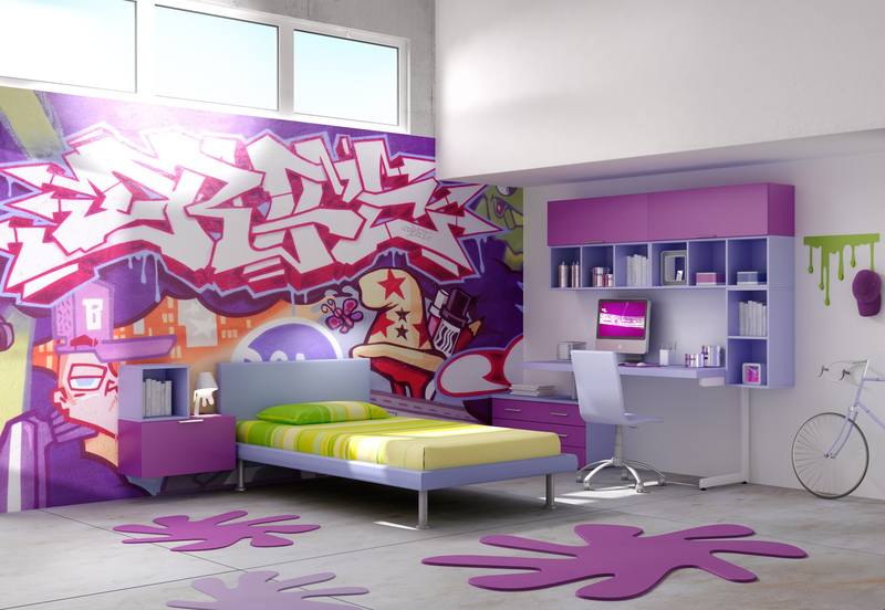 - Pour la chambre d'un adolescent, vous pouvez utiliser des peintures murales avec des éléments comiques.