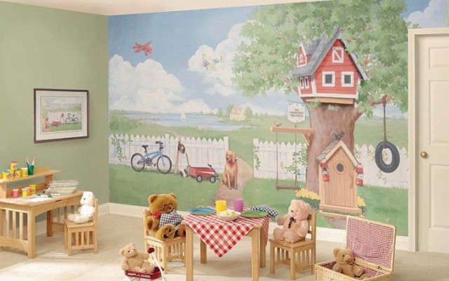 - Dans la chambre du bébé, il est recommandé d'utiliser des couleurs claires et chaudes du papier peint, qui représente des bateaux, des voitures ou des ours. Les dessins doivent être suffisamment clairs pour que l'enfant puisse concentrer son attention sur eux. Il n’est pas nécessaire d’utiliser des peintures murales de thèmes militaires ou agressifs dans la chambre du bébé; de telles images effrayeront le bébé;