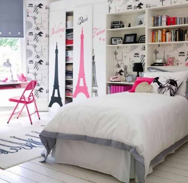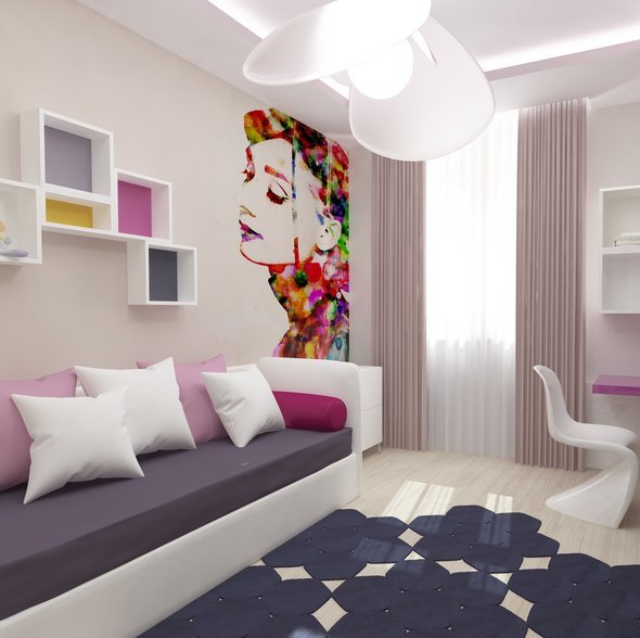 À cet âge, les filles ont des idoles musicales ou des héros de cinéma, vous pouvez donc l'inviter à choisir une couleur neutre des murs, qui sera un excellent fond pour les affiches et les portraits.