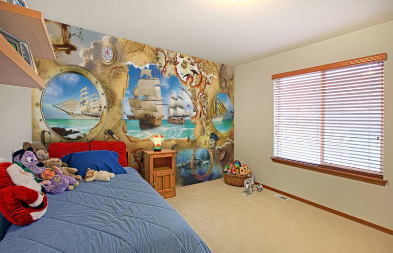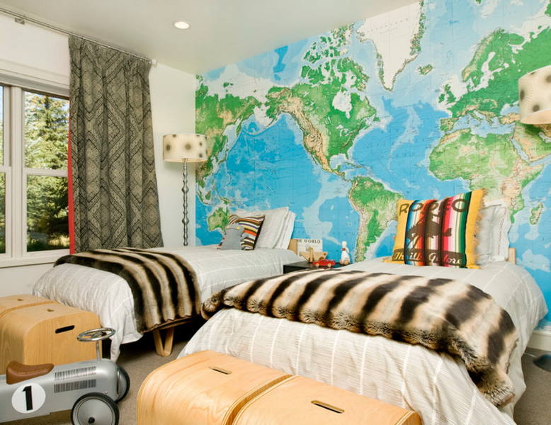 À cet âge, les garçons sont très curieux, donc une excellente solution serait le choix de papiers peints photo avec une carte du monde avec la désignation des itinéraires de navigation de marins célèbres et des pays qu'ils ont découverts;