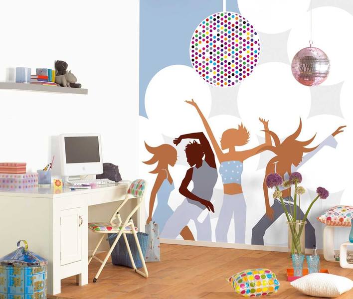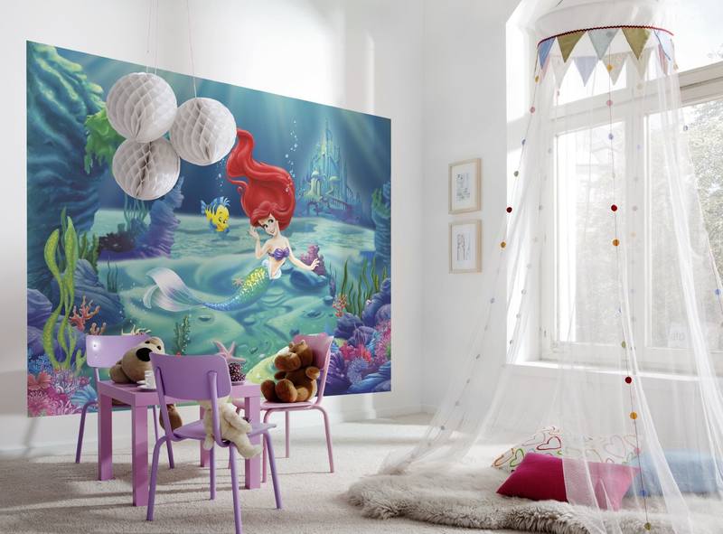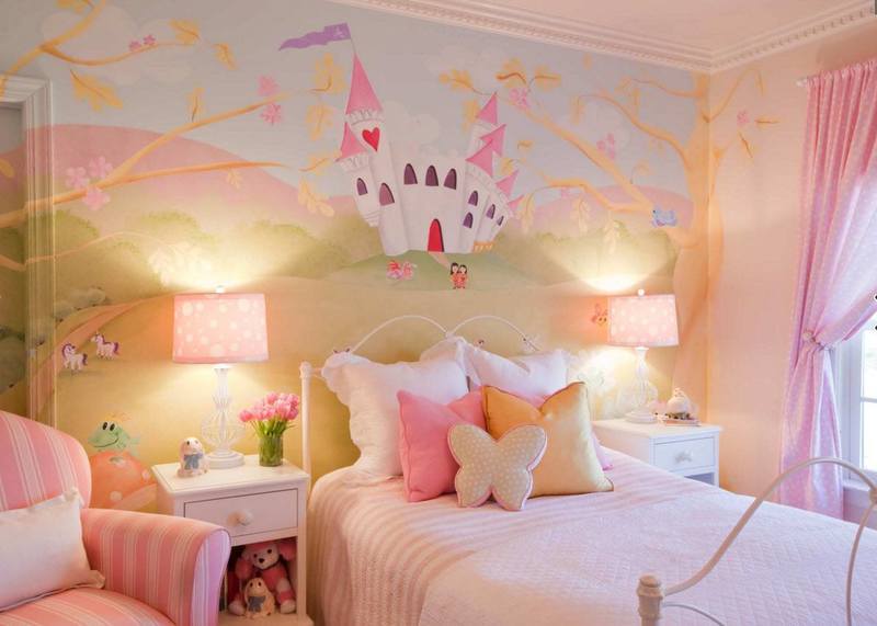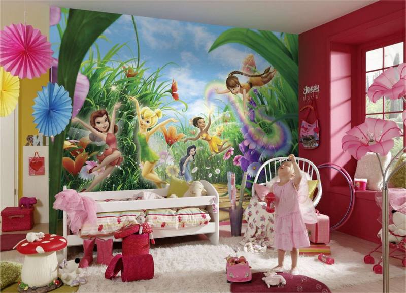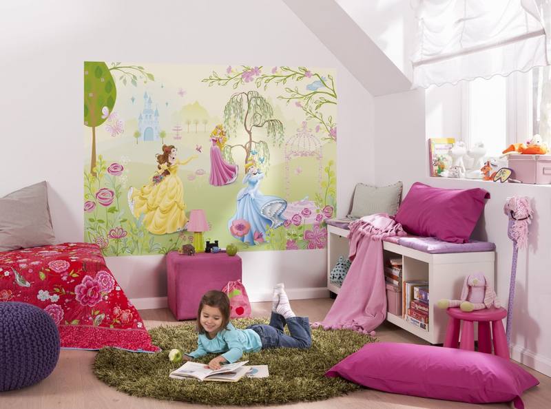 - Le thème du papier peint photo doit correspondre à l'âge de la fille. Pour un enfant de 3 à 10 ans, vous pouvez choisir des images de personnages de dessins animés et de princesses (voirLe papier peint photo est fabuleux: où puis-je utiliser);