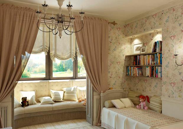En utilisant l'Art nouveau pour l'intérieur d'une chambre de fille, vous pouvez utiliser l'asymétrie caractéristique de ce style, des lignes courbes lisses et des dessins inhabituels d'animaux ou des compositions abstraites.