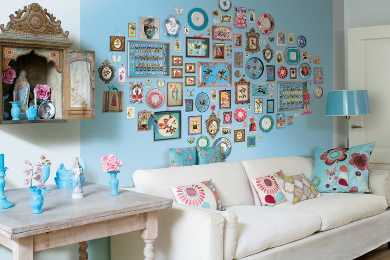 Si vous choisissez une teinte trop claire ou un papier peint blanc, l'intérieur doit certainement être ravivé avec des accents lumineux. Il peut s'agir de photographies ou de miroirs dans des cadres lumineux sur les murs, d'affiches et de collages de photos, d'étagères murales aux couleurs vives ou d'autocollants décoratifs.