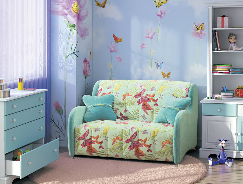- Âge préscolaire plus jeune jusqu'à 7 ans. Le papier peint doit avoir des tons pastel. Ils peuvent être simples ou avec une image discrète - papillons (voirPapiers peints avec papillons: choisissez vous-même), fleurs, feuilles et coeurs.