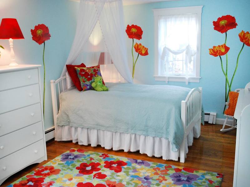 - Pour les filles plus âgées, des peintures murales avec l'image d'animaux ou de fleurs conviennent;