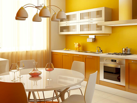 Des nuances d'orange, de jaune, d'or, de beige, de crème aideront à maintenir une atmosphère de chaleur et de gaieté dans la pièce.