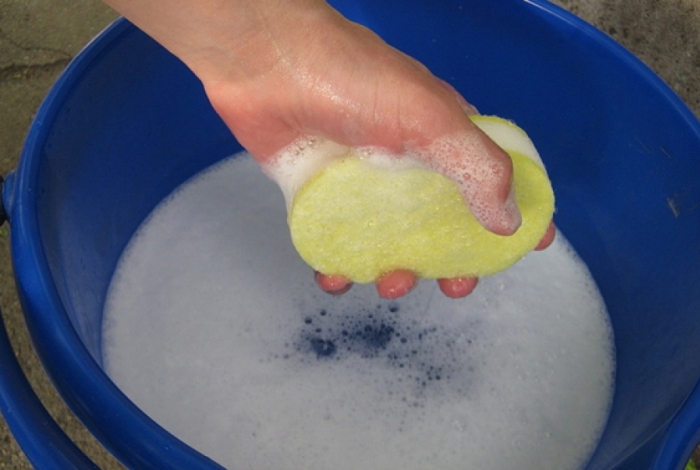 Remarque. Pour ce faire, vous pouvez utiliser n'importe quel détergent pour vaisselle, qui est ajouté en petite quantité à de l'eau chaude, et une éponge douce.