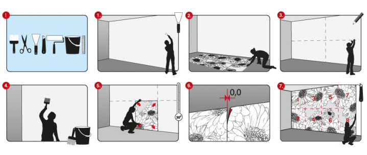 - Pour le travail, il est nécessaire d'utiliser de la colle spéciale pour le papier peint intissé.