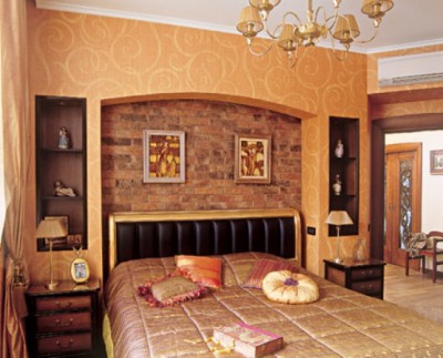 - Si vous envisagez de concevoir une chambre dans un style antique ou ethnique, alors il est préférable d'utiliser du papier peint dans des tons clairs, sous lequel vous pouvez facilement ramasser des meubles et des objets de décoration appropriés.