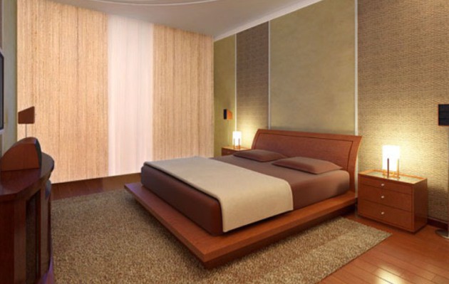 - Utilisation japonaise très originale dans la conception de la chambre. Le point culminant de l'intérieur peut être un papier peint imitant le bambou ou une surface en bois. Ou vous pouvez coller les murs avec des nuances de papier peint beiges, mais utilisez des objets aux couleurs japonaises pour décorer, par exemple, une branche de sakura dans un vase.