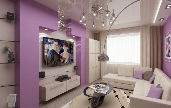 - Pour une petite pièce - besoin d'une image, avec de petits éléments très dispersés. Un coup d'œil rapide crée l'illusion d'un grossissement.