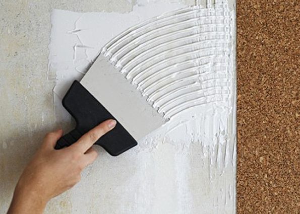 Le mur est enduit de colle acrylique spéciale (normal ne fonctionnera pas, car les papiers peints en liège sont plutôt lourds), puis un morceau de matériau est réparti sur sa surface. La quantité de colle doit être uniforme.