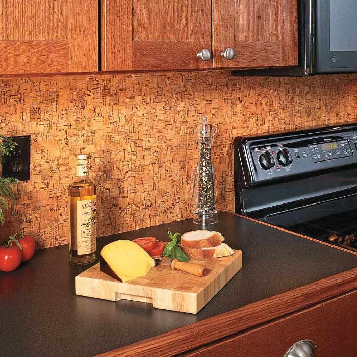Pour finir le coin cuisine, le papier peint en liège doit être associé à des meubles naturels de couleurs peu vives: une teinte marron est idéale (voirLa couleur du papier peint pour la cuisine et les critères d'un design parfait).