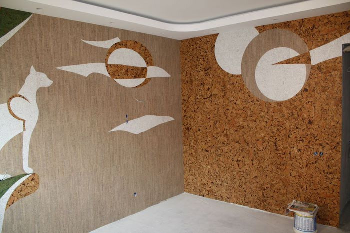 Attention: Il n'est pas recommandé de décorer tout l'espace avec du papier peint en liège, cela aura l'air trop ennuyeux.