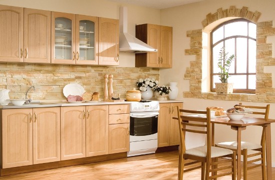 - Si la cuisine n'est pas ensoleillée, il est préférable de coller des papiers peints aux couleurs chaudes: orange, jaune et blanc.