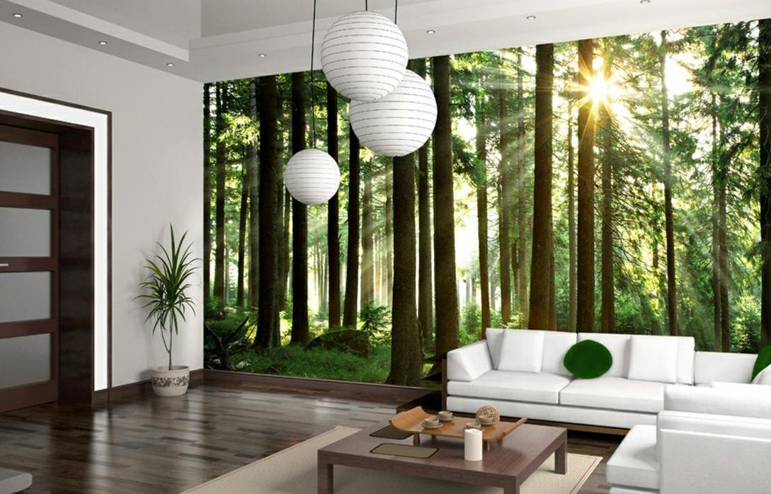 Nature saine à l'intérieur de la pièce | Dans le classement de la popularité des images 3D pour le papier peint, la nature est en tête (voirPeinture murale nature pour votre conception.). Paysages, compositions, panoramas aux motifs naturels (forêt, ciel, océan) sont conçus pour donner à l'appartement légèreté, pureté et ambiance printanière. |