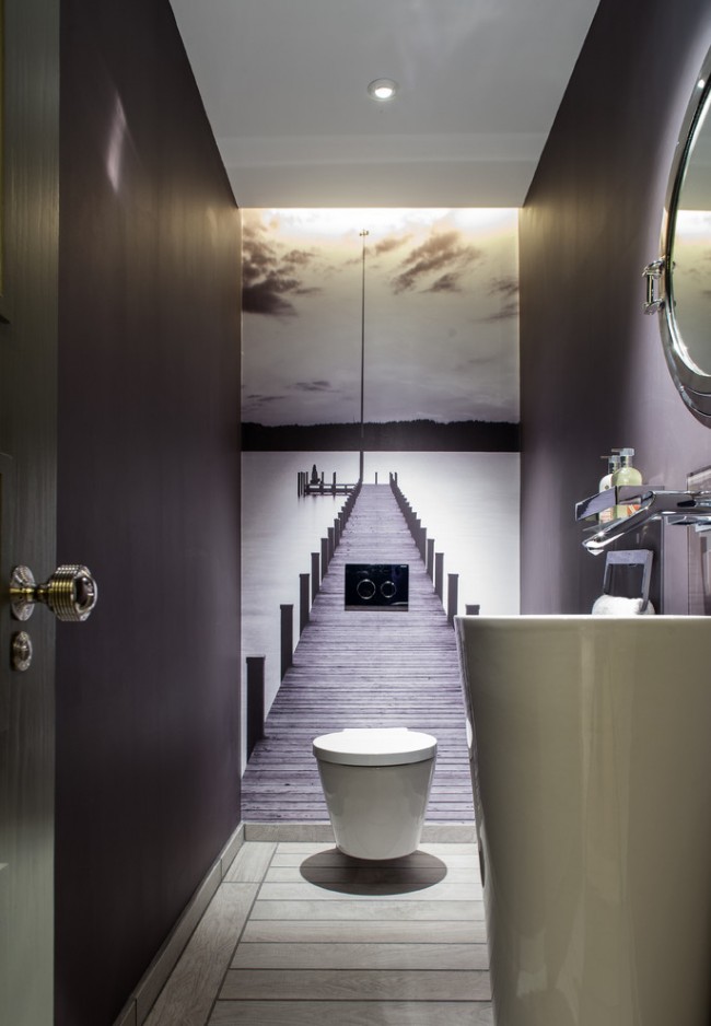 Dans les toilettes pour murs, les peintures murales doivent être sélectionnées avec beaucoup de soin, en particulier vous devez faire attention à l'image, car elle peut visuellement à la fois augmenter la surface de la pièce et la réduire. Une toilette est une pièce rarement grande et mal éclairée.