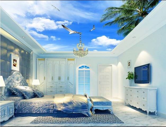 L'image avec le ciel est considérée comme universelle, car ce motif plutôt neutre peut être utilisé dans n'importe quel intérieur stylistiquement orienté, dans une variété de pièces. Si les peintures murales antérieures n'étaient utilisées que sur les murs, elles peuvent maintenant être utilisées pour coller au-dessus des plafonds.