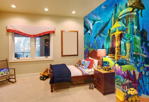 Conseil! Assurez-vous de faire attention à la qualité de la toile photo, car le papier peint photo moderne est créé à partir de divers matériaux, le papier peint photo pour la chambre de l'enfant doit être respectueux de l'environnement.
