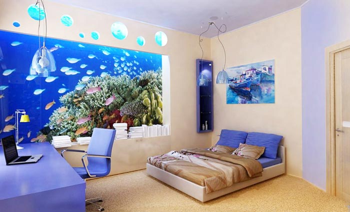 - N'oubliez pas la palette de couleurs dans la pièce. Les couleurs dans l'image du papier peint photo et à l'intérieur de la pièce doivent être dupliquées.