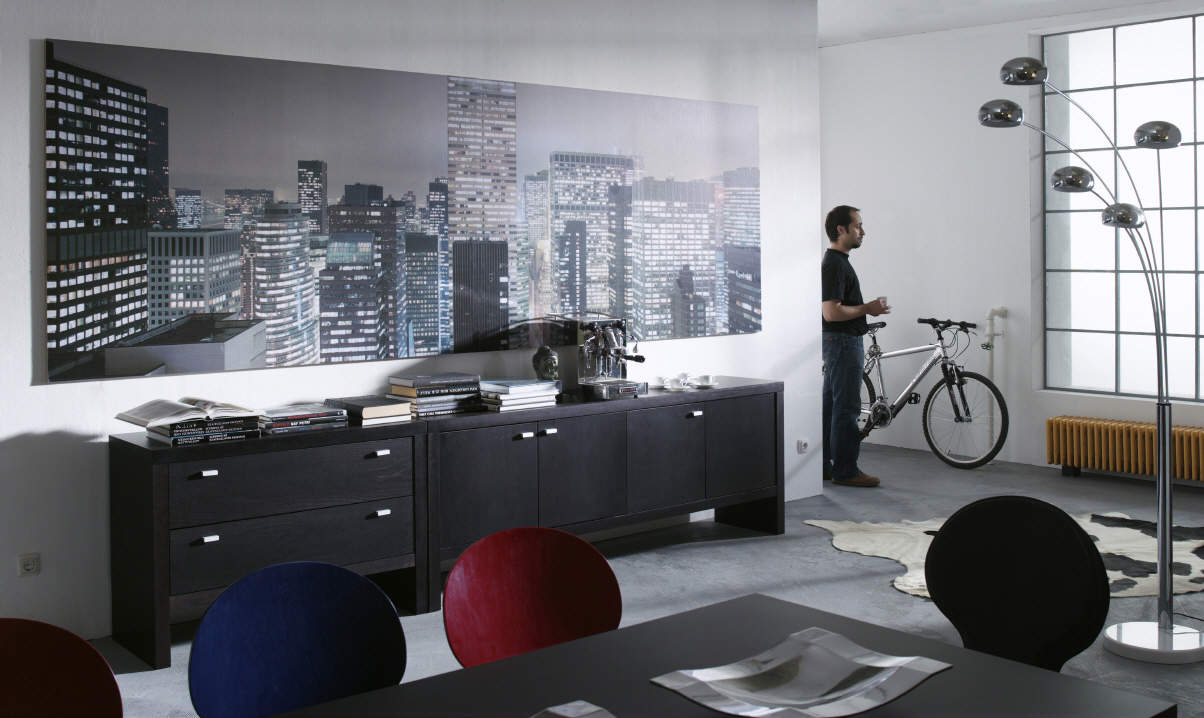 - Dans le salon sans un certain style, les images des mégalopoles modernes auront fière allure.