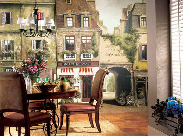- Les peintures murales avec l'image d'un café de rue dans une ville ancienne ou moderne conviennent très bien à la cuisine.
