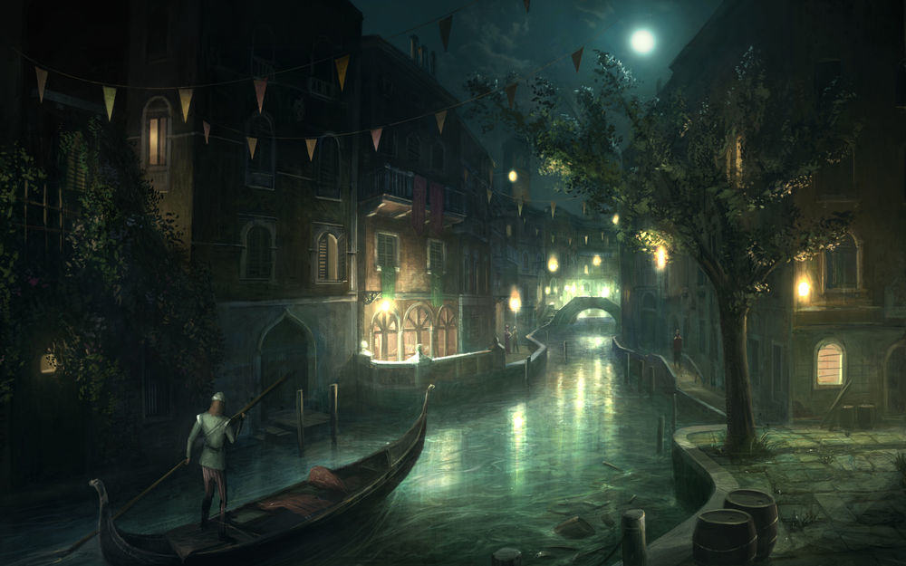 - Des images d'hommes et de citadins du quartier vénitien se déplaçant le long des rues aquatiques ajouteront une présence réaliste à l'intérieur.