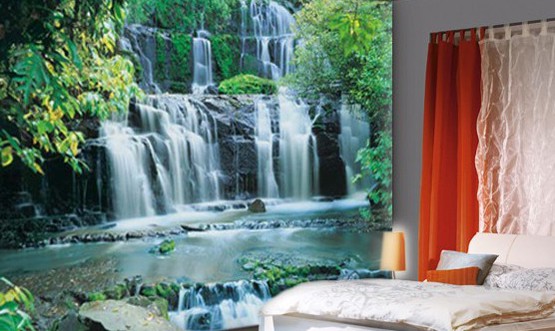 - L'image de grandes chutes d'eau tombant de hautes montagnes élargira l'espace de la pièce, mais affectera l'atmosphère chaleureuse.