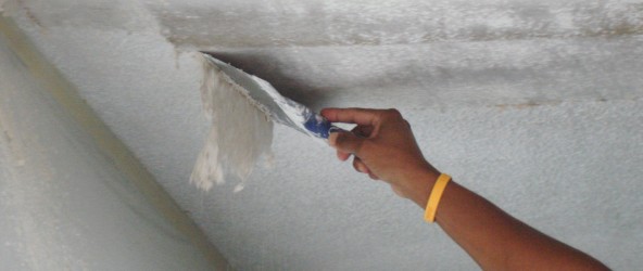 - La surface entière du plafond doit être nettoyée des restes des anciens matériaux de finition et traitée avec des outils spéciaux.