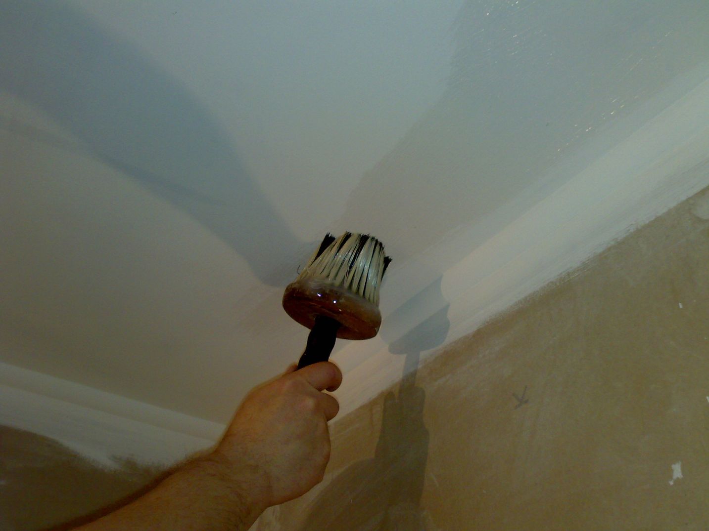 Pointe. Rouler la surface jusqu'à ce que le matériau adhère complètement au plafond.