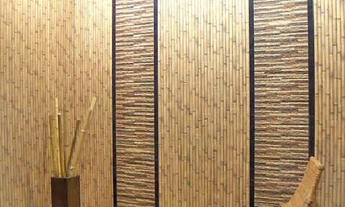 - Bambou. Un tel revêtement est constitué de lamelles de bambou minces et durables qui sont séchées d'une manière spéciale et collées sur un tissu dense. Dans certains cas, en plus de la colle, un beau point décoratif est utilisé pour les fixer. Les papiers peints en bambou se distinguent généralement par leur couleur naturelle, en fonction de la variété végétale. La base du tissu confère au matériau les propriétés d'isolation acoustique et de résistance à l'humidité.