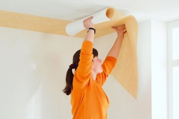 Conseil: Si vous achetez du papier peint qui n'a pas besoin d'être appliqué sur de la colle, seule la surface du plafond est tachée.