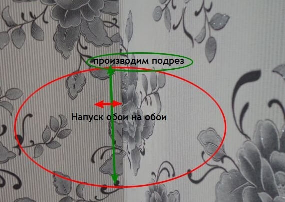 - Le bord de la feuille est pressé contre le mur avec une force maximale. Dans le cas des rides, ainsi que lorsque vous travaillez avec des coins internes, de petites incisions sont faites.