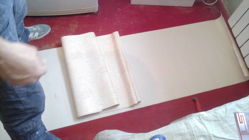 Il y a des papiers peints dans lesquels soit du vinyle de mauvaise qualité, soit trop, c'est pourquoi ils sont mal saturés et extrêmement réticents à changer la forme qu'ils ont prise en rouleau.