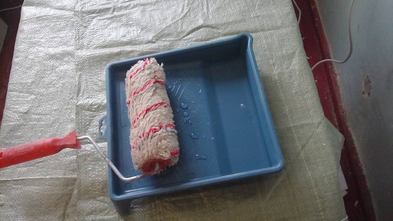 Avant la réparation, achetez-vous un bain en plastique et un rouleau - nous les utiliserons pour appliquer tous les composés que nous rencontrons en cours de route. L'avantage de la baignoire devant le seau est indéniable, car la capacité à éliminer l'excès d'humidité de l'outil vous permet de faire tout le travail avec plus de précision.