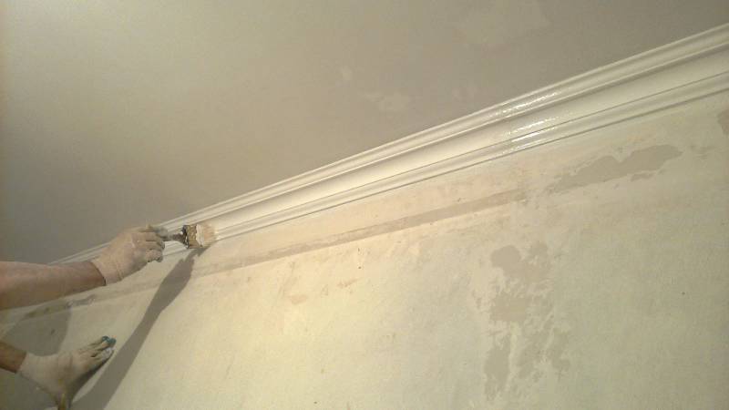 Quant au plafond, nous ajoutons ce qui suit. Tous les travaux d'alignement, de peinture et d'installation des moulures de plafond doivent être terminés avant le collage. Il est également conseillé de poser à l'avance le revêtement de sol (à l'exception du tapis) afin de ne pas endommager les murs à l'avenir. L'exception concerne les plinthes de sol, qui sont installées en dernier.