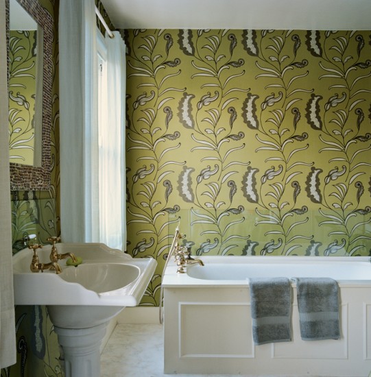 Tout d'abord, ce papier peint est hygiénique, car il est lavé même avec de l'eau tiède et du savon. Deuxièmement, ils ne sont souvent collés que depuis le milieu du mur. Par le bas, le mur est recouvert de tuiles, de bois ou de plastique.