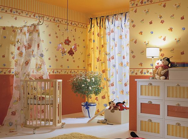 - Du fait qu'aucune matière première polymère n'est utilisée dans leur production, les papiers peints en papier «respirent» et sont les plus respectueux de l'environnement.Il est recommandé de les coller aux murs de la pépinière et de la chambre.