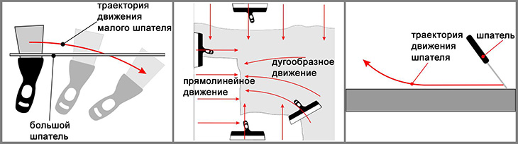 - Le diagramme montre la trajectoire de la spatule lors de l'application du mastic de finition. Les experts recommandent l'utilisation de tels mouvements, car ils faciliteront le travail et fourniront une couche plus uniforme du mélange.